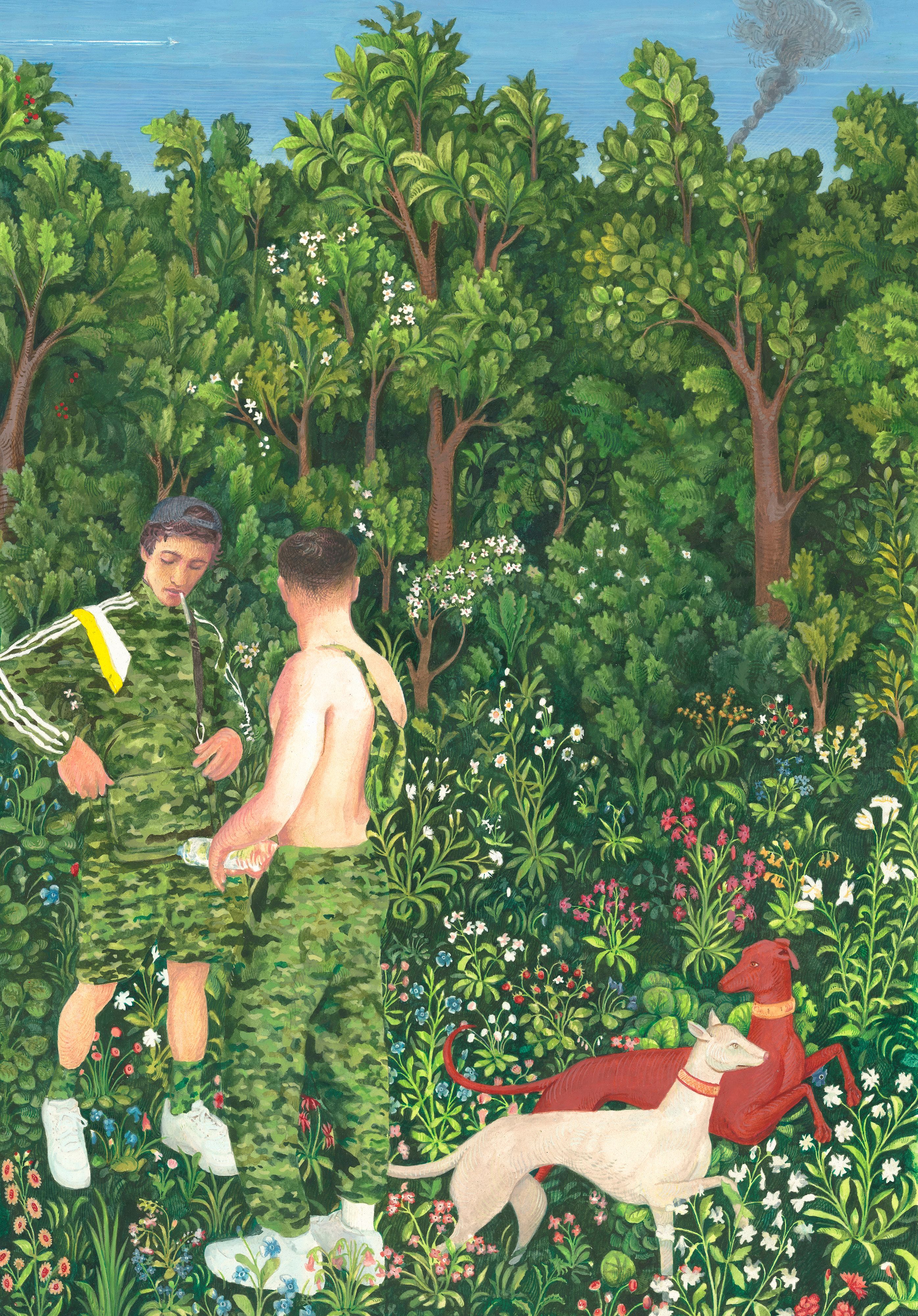 Painter of miniatures and icons, Jean Claracq creates a dialogue between painting and the digital realm. His models, drawn from social networks such as Instagram and Grindr, interact in his paintings with numerous references to art history, in particular Northern European paintings of the 15th and 16th centuries. Attached to traditional techniques – through his use of oil painting on wood and his attention to details – the artist plays on different interpretations and depicts with accuracy our relationship to screens and solitude in the urban environment.