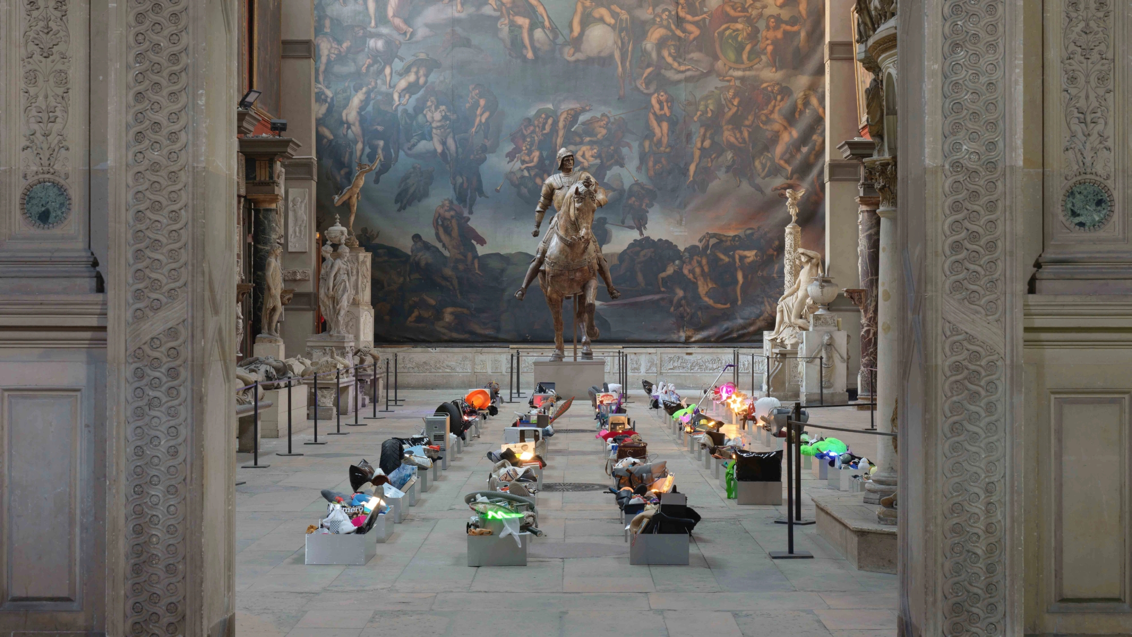 For his presentation during Art Basel Paris, Harry Nuriev reflects on consumption and Transformism through his work Objets Trouvés. This piece engages in dialogue with his previous projects, including his collaboration with the Louvre Museum, the installation Lèche-Vitrines at Sultana Gallery, Paris, Foam Room at Dittrich and Schlechtriem, Berlin, and his first solo exhibition, 6 Fears at Dallas Contemporary, Texas. Nuriev often works with everyday objects, reimagining them to express his vision of a post-apocalyptic future, yet always with a positive perspective. His practice envisions a world without factories or new materials, where repurposing and conscious design are essential to navigating life and envisioning an alternative utopia.