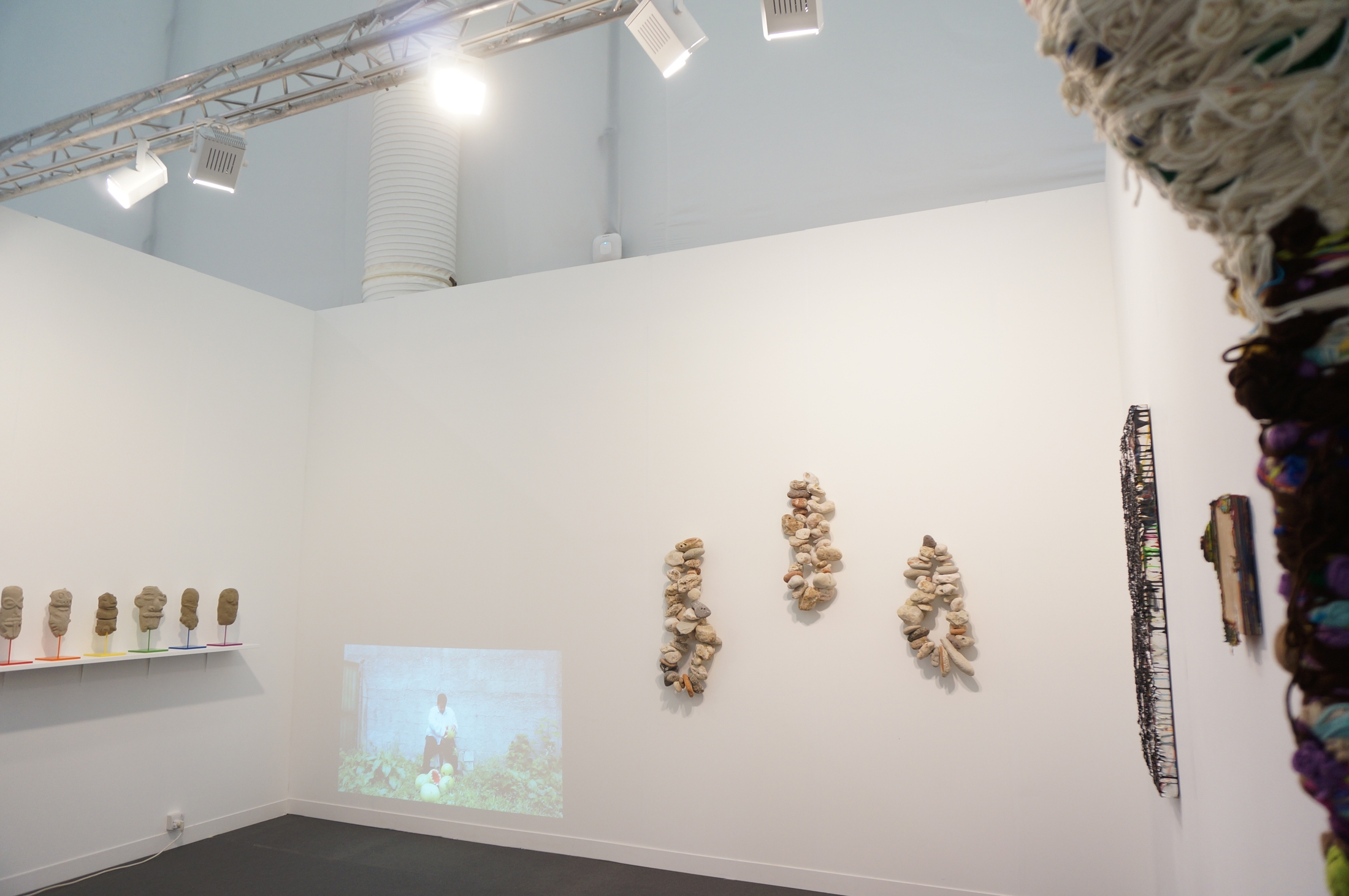 The stand will present three artists—Jacin Giordano, Olivier Millagou, and Naufus Ramirez Figueroa—whose work is inspired by rituals and a so-called “primitive” aesthetic. Displayed on the walls, five to seven of Giordano’s “Masks for Hunting” (2014)—wild visages made from bright wools, acrylic, and empty canvas stretchers—will contrast with the neutral tones and simple form of Millagou’s pebble Necklaces (2013), which are inspired by traditional Hawaiian leis. Video documentation Figueroa’s performance, Bird (2013), in which he decorates his body with feathers, will be presented on a flat-screen monitor.