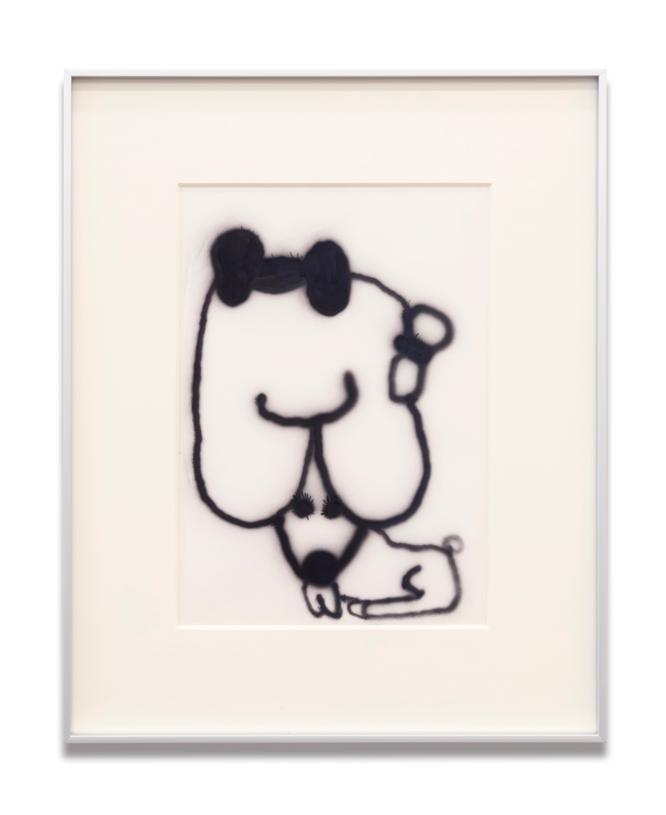 Je parle dâautant plus volontiers de « passant·es » que le travail de la coul(e)ur(e) et du dessin dâAdrien Fregosi sâest dâabord Ă©panoui dans la rue. Ă Grenoble, courant des annĂ©es 2000, il graffait sous lâalias PUZL et dĂ©fendait, avec lâespace indĂ©pendant Going Blind notamment, une scĂšne alternative nourrie par la contre-culture amĂ©ricaine (des cartoons en passant par les zines et le skateboard). Les choses ont commencĂ© Ă changer Ă partir de 2013, date Ă laquelle il sâest installĂ© Ă SĂšte (oĂč le graff Ă©tait plus durement rĂ©primandĂ©) et oĂč il est tombĂ© malade. Sa pratique sâest alors dĂ©placĂ©e vers lâatelier, conservant des habitudes dĂ©veloppĂ©es dans la rue : la bombe aĂ©rosol pour projeter la peinture, le « faire avec » lâexistant (il rĂ©cupĂ©rait des supports et des outils sur le point dâĂȘtre jetĂ©s) et lâimprovisation (impulsĂ©e non plus par le timing du graff mais par lâĂ©nergie disponible sur le moment). Ă lâatelier, il semble aussi sâĂȘtre rĂ©appropriĂ© les gestes de recouvrement et dâeffacement, qui, dans la rue, guettent inĂ©vitablement toute forme de dessin dĂšs son apparition. Les feuilles de format 102 x 72 cm prĂ©sentĂ©es dans lâexposition sont ainsi lavĂ©es de plusieurs couches de peinture sprayĂ©e, parfois complĂ©tĂ©es par de lâacrylique. Ă certains endroits, un dessin grattĂ© dans le frais dĂ©voile la sĂ©dimentation des couleurs. La dimension aĂ©rienne de lâaĂ©rographe â dont Adrien Fregosi se servait pour certains dessins sur petit format â et de lâaĂ©rosol transforme nĂ©cessairement la qualitĂ© du tracĂ©. Une partie se perd dans lâatmosphĂšre tandis que lâautre se fixe sur le papier. Elle donne aux figures cette dimension Ă©vanescente, les aurĂ©oles parfois un halo ; ce qui ne les empĂȘche pas de dĂ©gouliner par ailleurs. Les formes existent entre lâĂ©tat liquide et gazeux, sâĂ©lĂšvent en mĂȘme temps quâelles se vident. Câest comme regarder un nuage : plus vous vous en approchez, plus ses contours vous Ă©chappent.