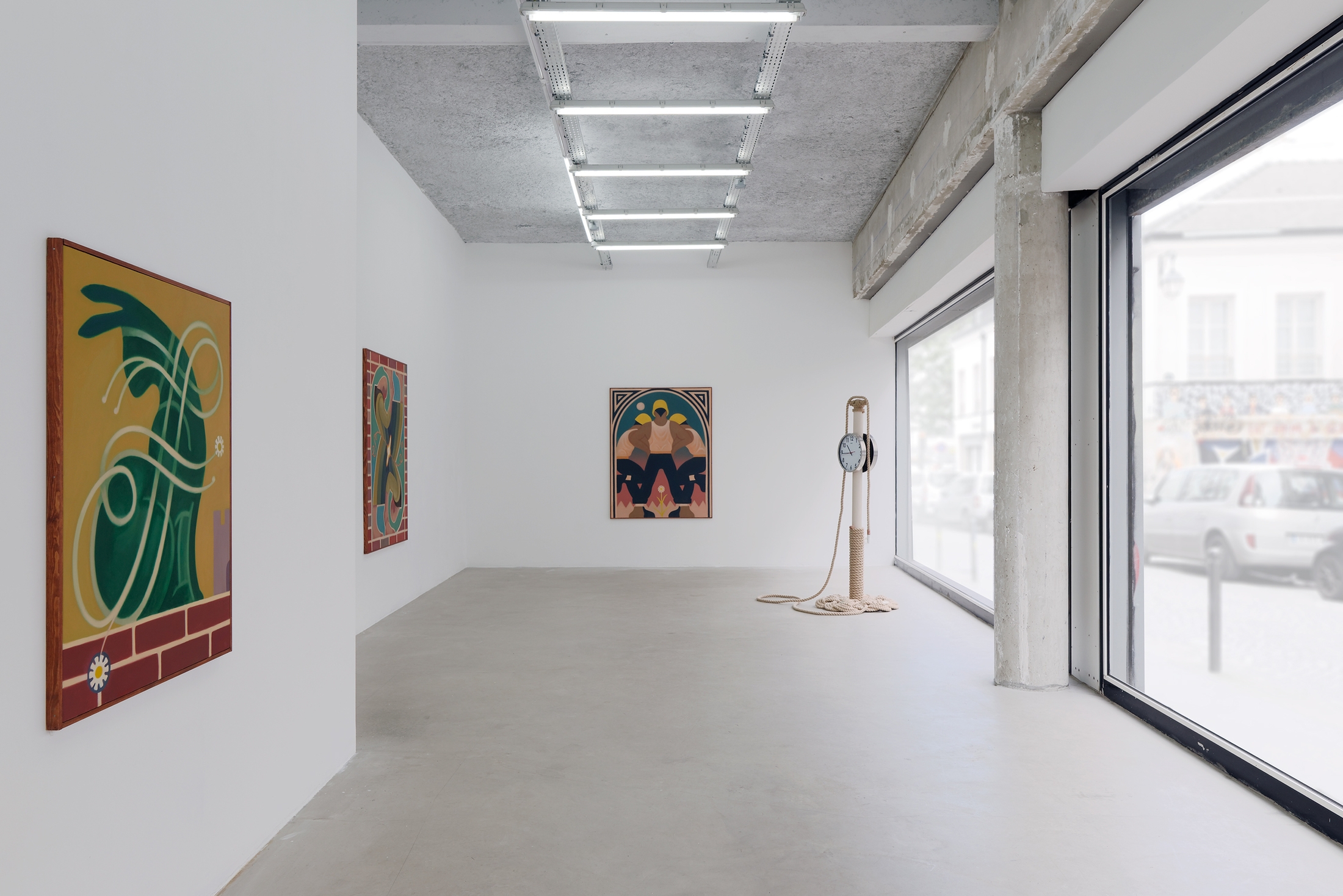 « I am interested in the act of painting as a way to explore the idea of conceptual metaphors, metaphors that structure our world view and perspective. ( see âmetaphors we live byâ by Lakoff) . For me, painting, in an improvisational mode, can turn the process of metaphor into a visual performance or an evidence, a constant sliding across the surface of a subject, it can enact the semantic jumps the mind makes when likening one thing to another and it provides an evidence of this fundamental activity. I have used text and text-like forms in my paintings a lot, and my interest is around the borders of where text becomes body, things that can hover between legibility and sensibility. I am interested in the choosing of objects to invest with meaning and create a narrative, but also to look at the mechanics and syntax of that meaning and how it is created. Painting becomes a machine that allows metonymic growth, a kind of world building. »